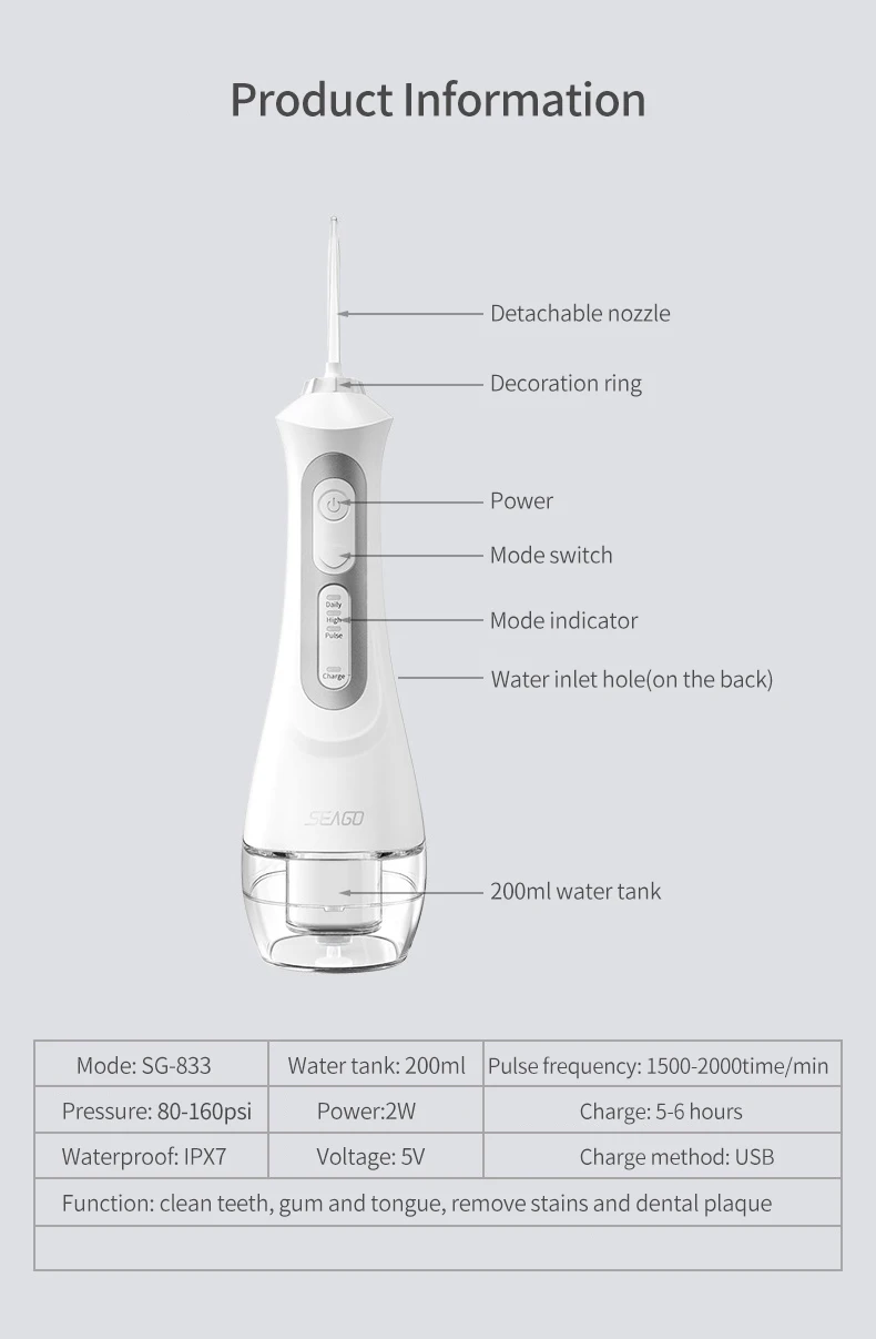 О SEAGO Water Flosser- SG833: