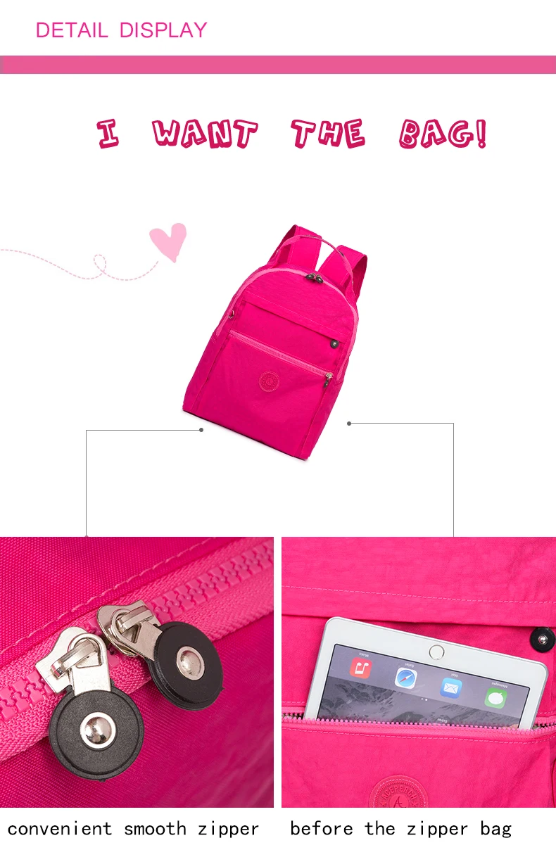 Mochila Feminina EscolarNylon Waterproof Backpacks