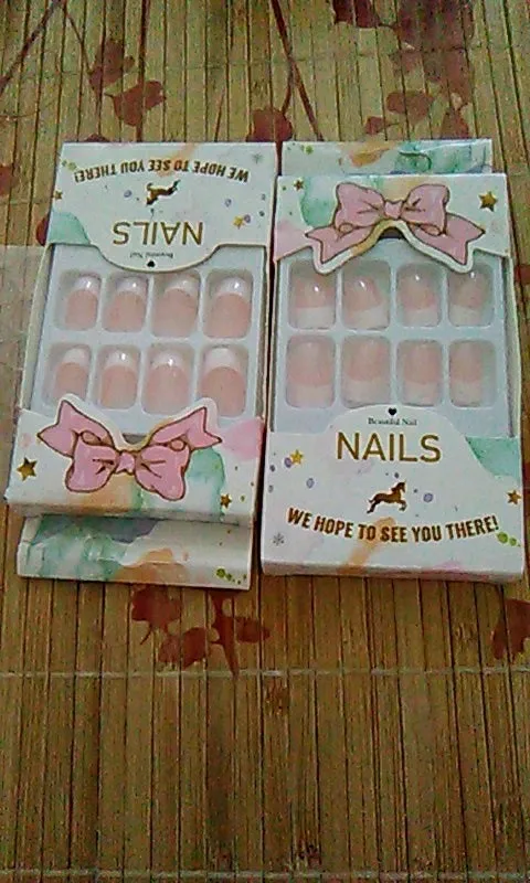 Это не идет с клеем, это обычные и обычные накладные ногти. Что не стоит покупать здесь, они найдены на любом китайском языке.