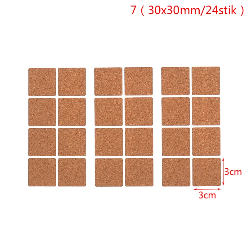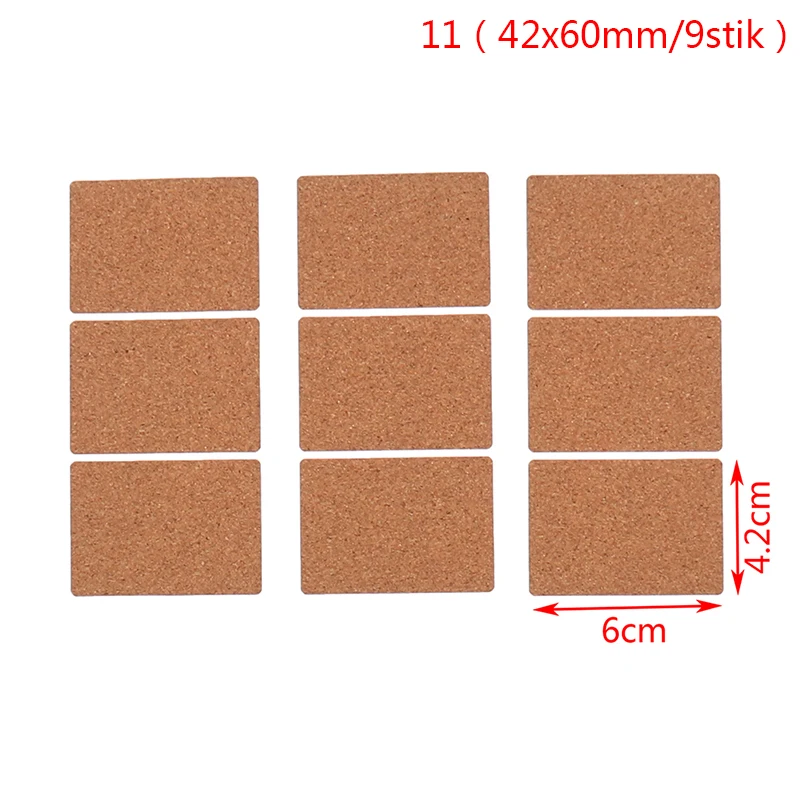 Характеристики:Материал: пробковое деревоЭффект: водонепроницаемыйРазмер:1: черный 30x60 мм x 12 шт.N3:22x63 мм x 18 шт.N8: Круглый 35 мм x 20 шт.N10: черный 30x30 мм x 24 шт.N12: 126x60 мм x 3 шт.N13: 185x86 мм x 2 шт.N4: черный 14x30 мм 48 шт.