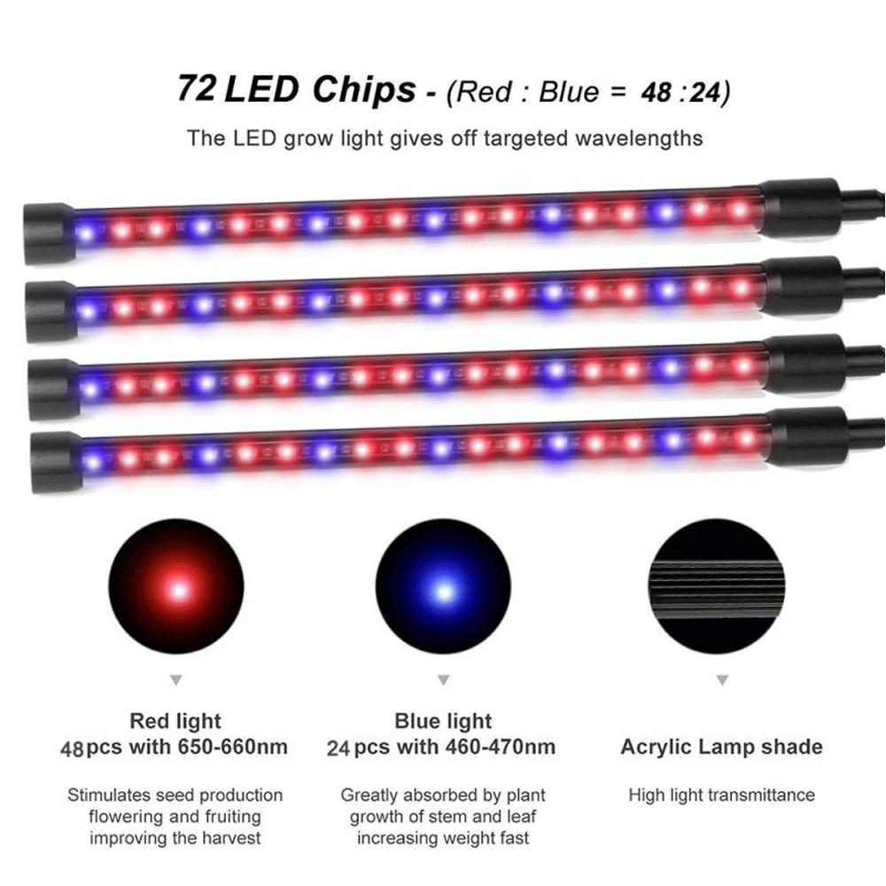4 головки светодиодный Grow светильник полный спектр Фито лампа USB клип на лампа для выращивания растений с питанием от источника для растений в помещении рассады цветок Тепличный тент фитолампа