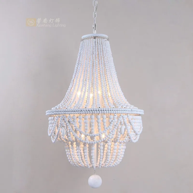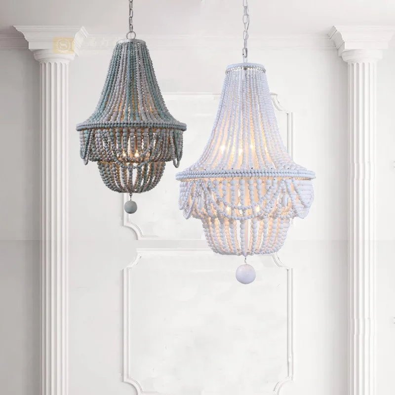 Американская деревенская ретро люстра для гостиной, спальня, скандинавский детский дуплексный строительный столовый, деревянная люстра из бусин