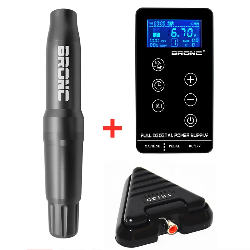 Оригинальная миниатюрная вращающаяся тату-машинка Bronc-V4 со швейцарским мотором, Мощный Тихий А, сенсорный экран, бронзовая, мощная, ножная, Pdal