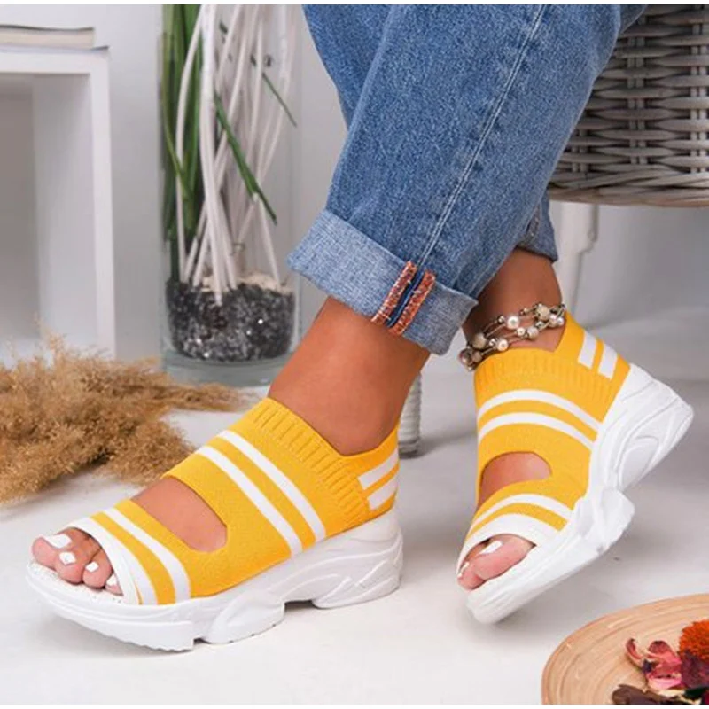 Повседневная обувь для женщин, летние кроссовки, женские сандалии без шнуровки, 2021 эластичная женская обувь, женская обувь на платформе с открытым носком