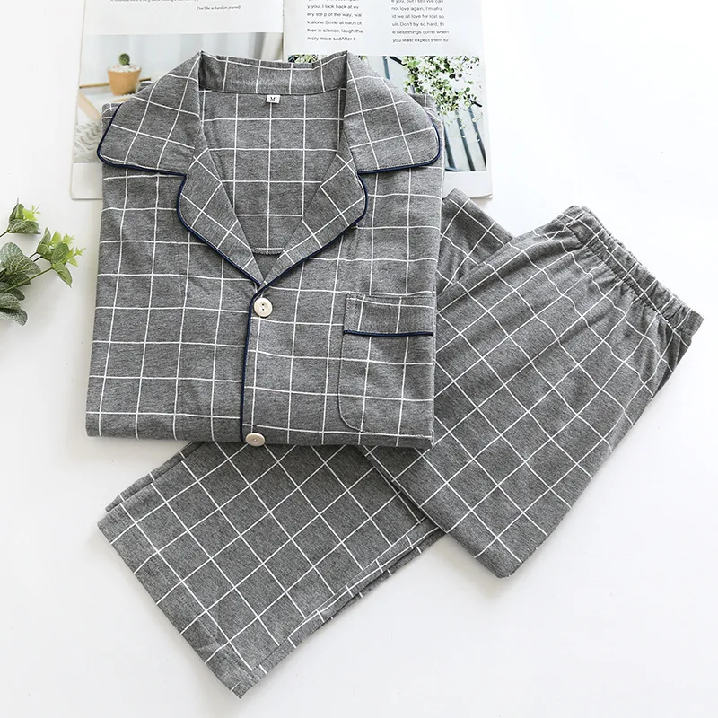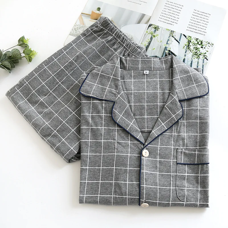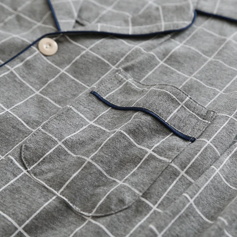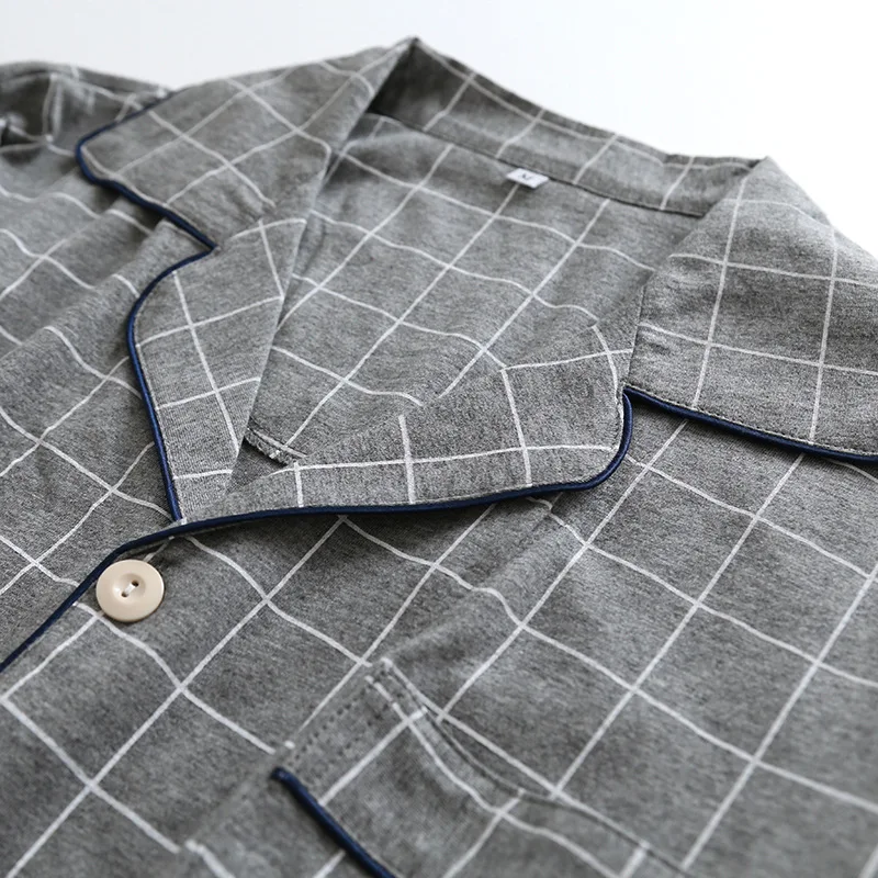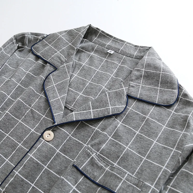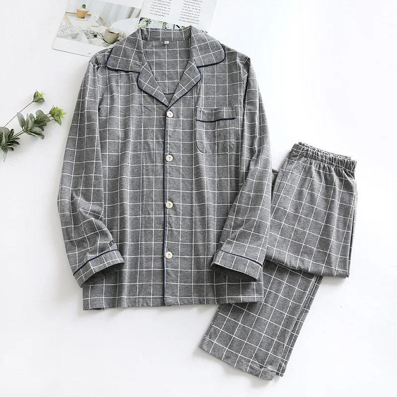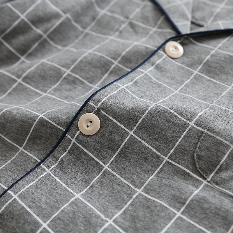 Пижамный комплект KISBINI, женский, мужской, в клетку, с длинным рукавом, из чистого хлопка, мягкий, домашняя одежда, серый, Женский пижамный комплект