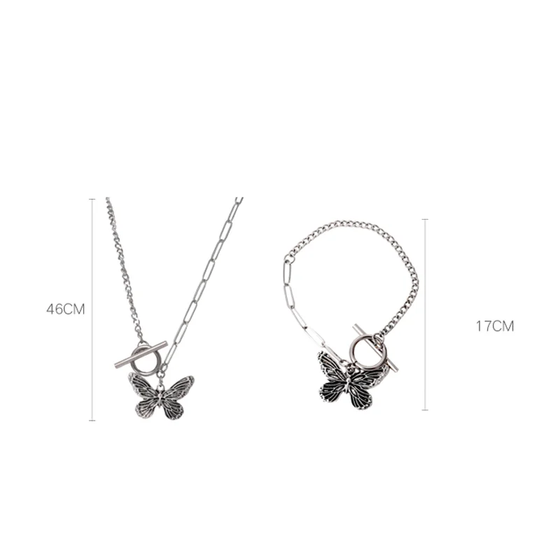 Корейский в ретростиле с изображением бабочки для ожерелье для женщин от пряжки на длинной цепочке, полые, серьги, браслет в готическом стиле Вечерние ювелирные изделия, модная новинка