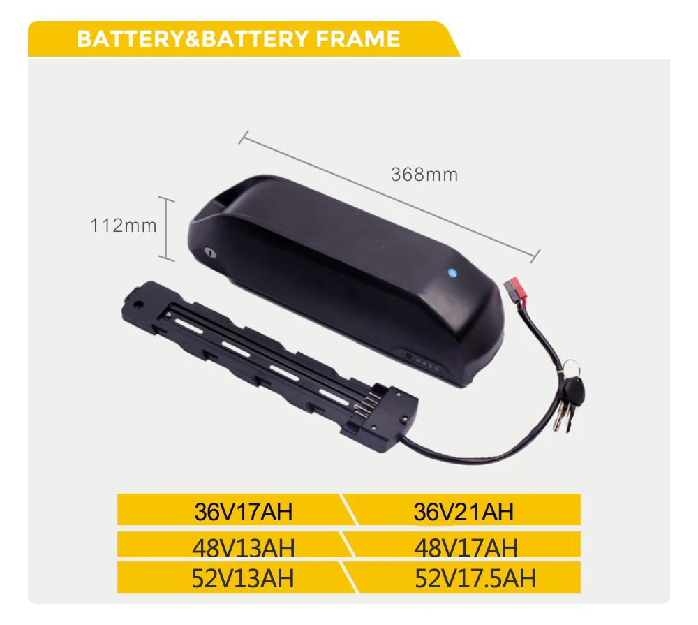 Travel distance / charging: 52v17.5ah65km; 52V3A charger; >1200cycles