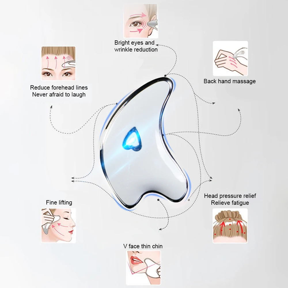 Электрический скребок для лица, массажер для шеи и тела устройство для удаления морщин, нагревательный инструмент для красоты лица, подтягивающий инструмент для похудения Guasha