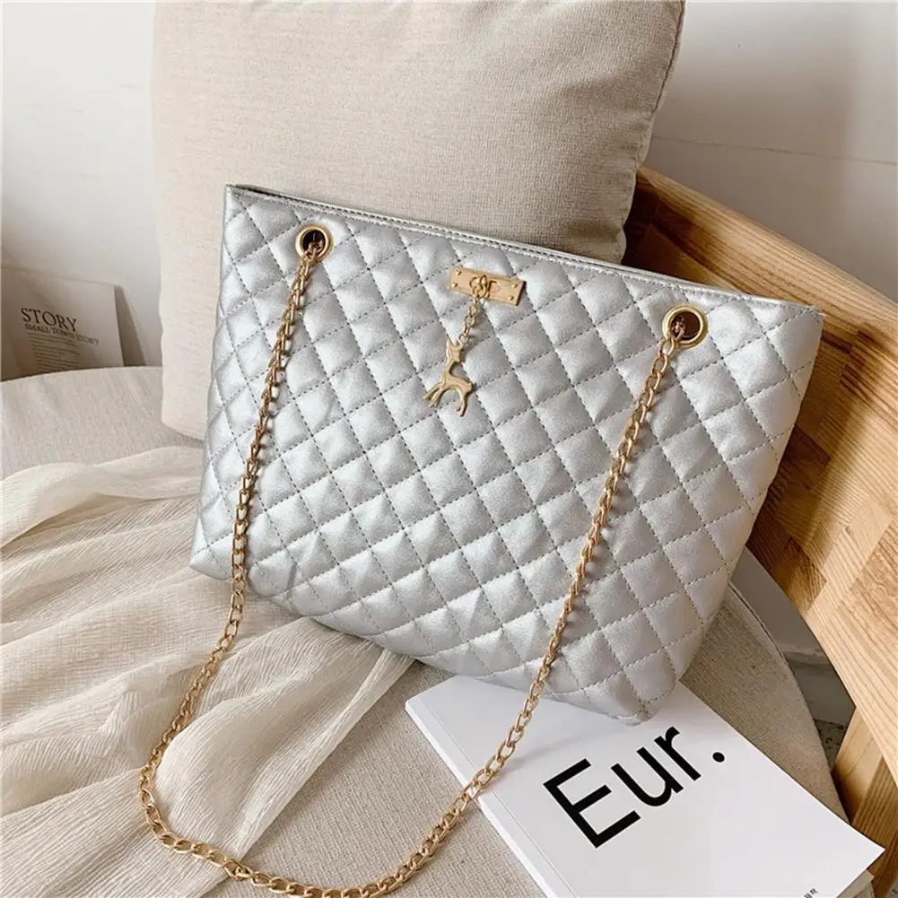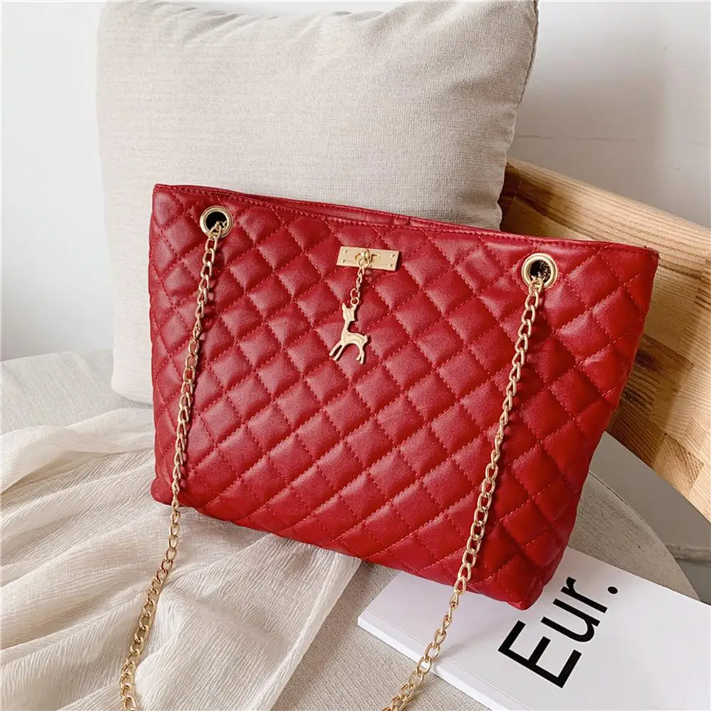 Модная сумка из искусственной кожи с цепочкой, женские большие сумки с ручкой сверху, сумки через плечо