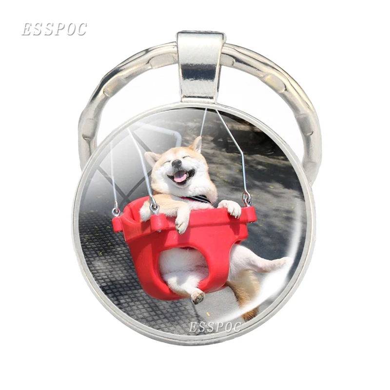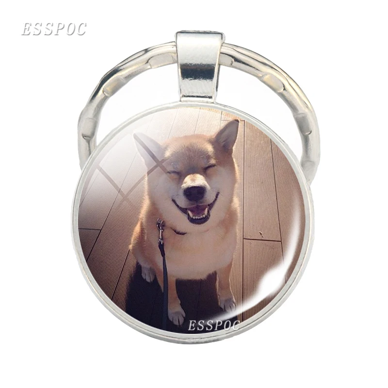 Немецкая овчарка Сиба ину брелок со стеклянным кабошоном модный брелок для ключей милая собака подвеска украшения подарки для любителей собак и животных