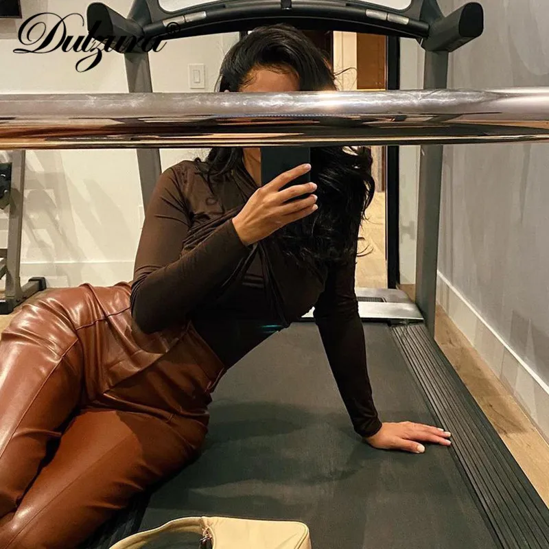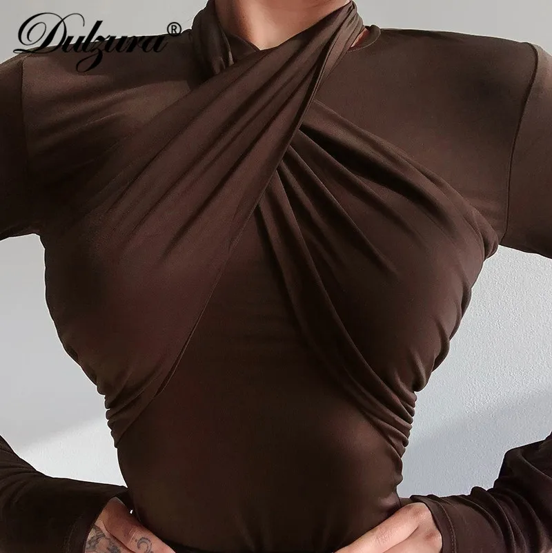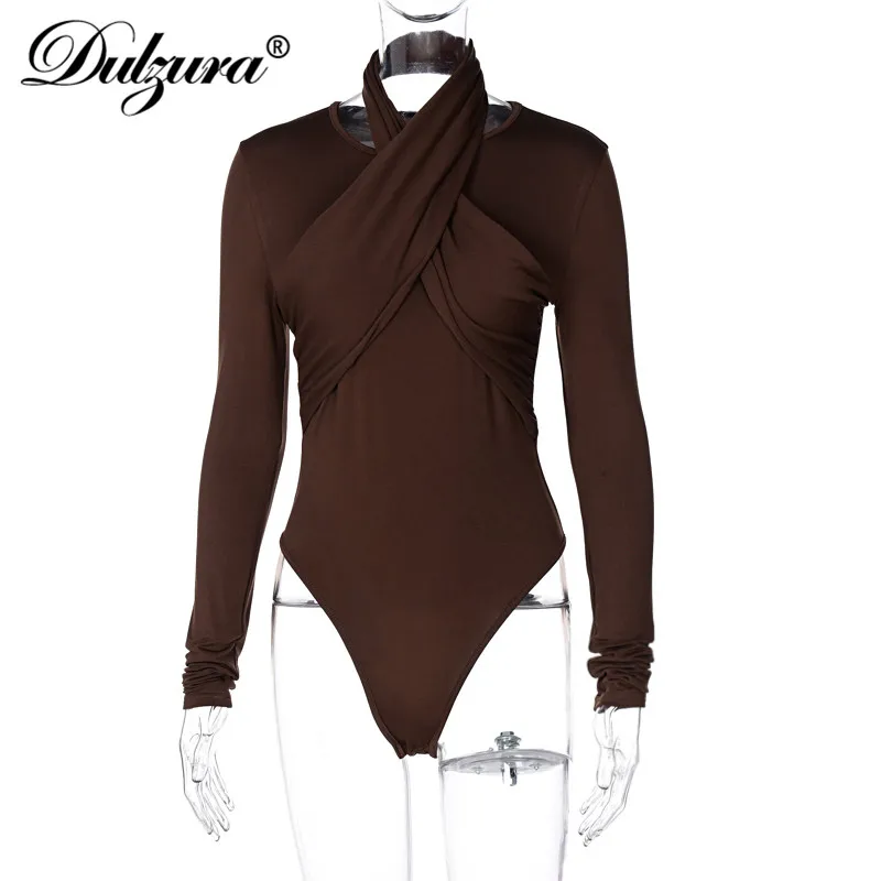 Женский комбинезон с длинным рукавом Dulzura, облегающий боди с лямкой через шею, вечерние, элегантные, уличные, Осень-зима 2020
