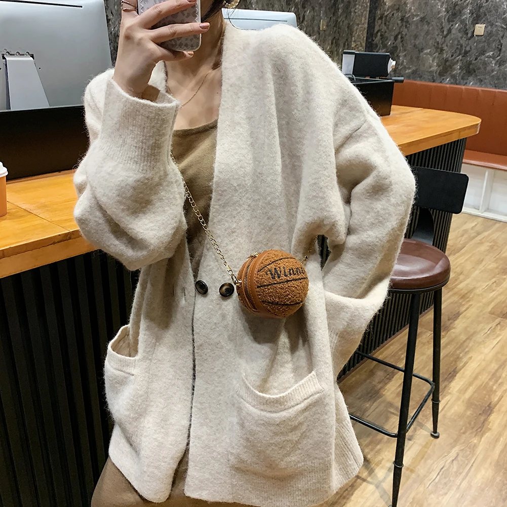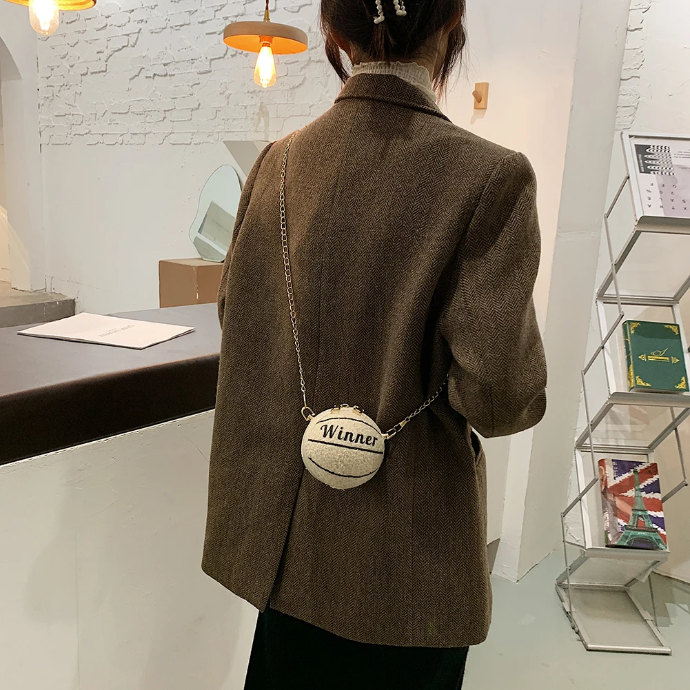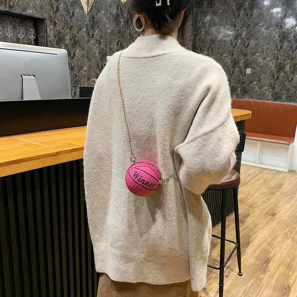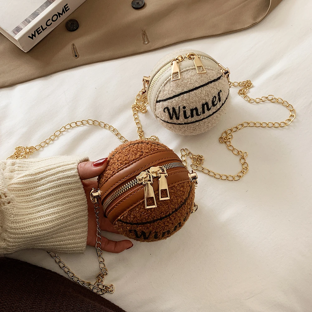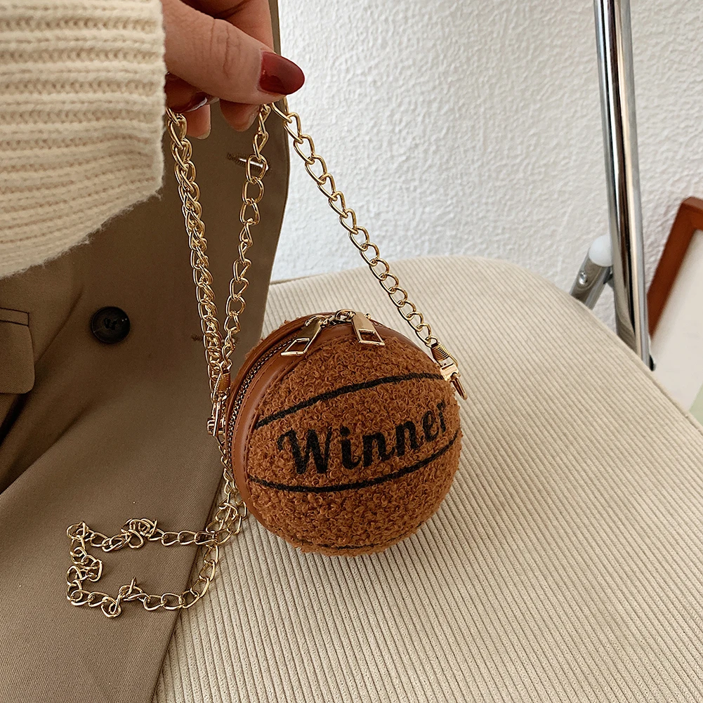 Модный клатч на плечо в форме шара для женщин, плюшевая женская сум...