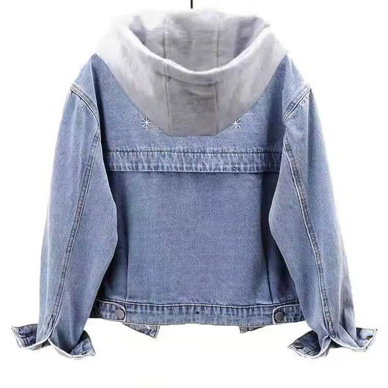 Женская джинсовая куртка с капюшоном, зимняя повседневная короткая ...