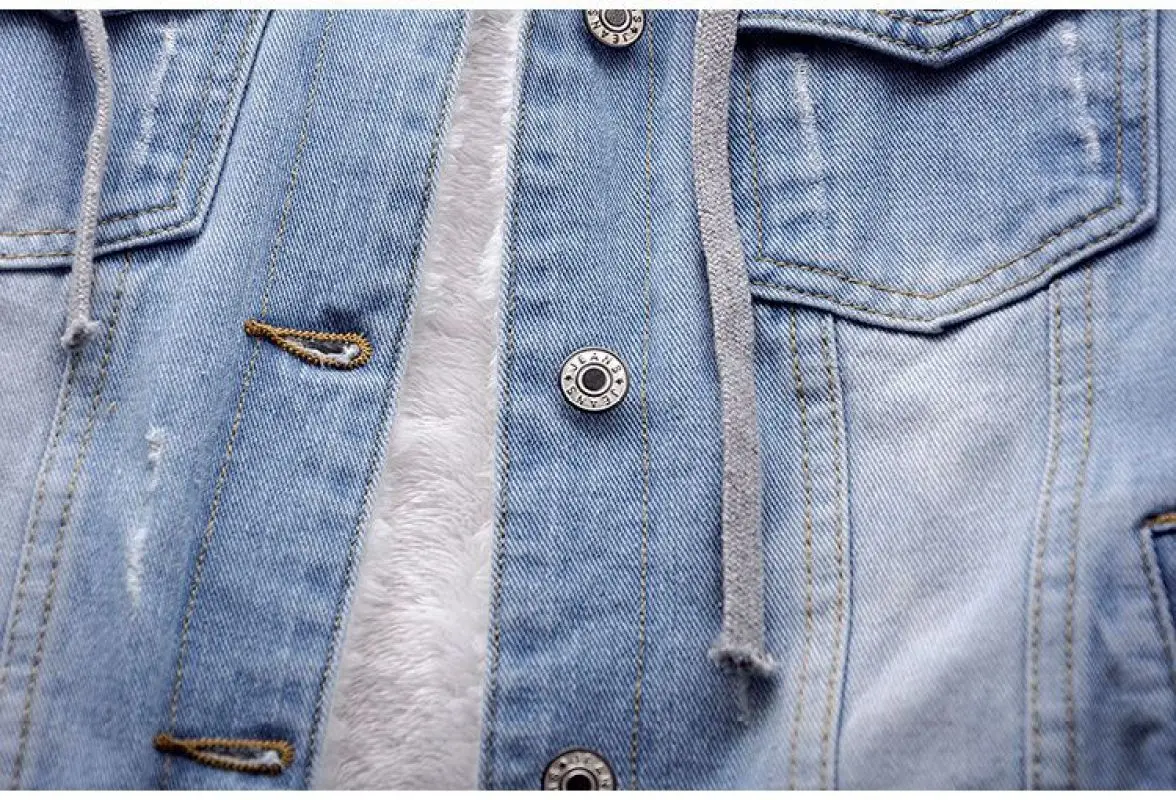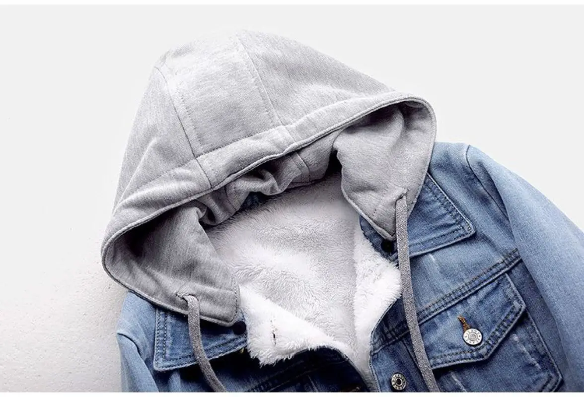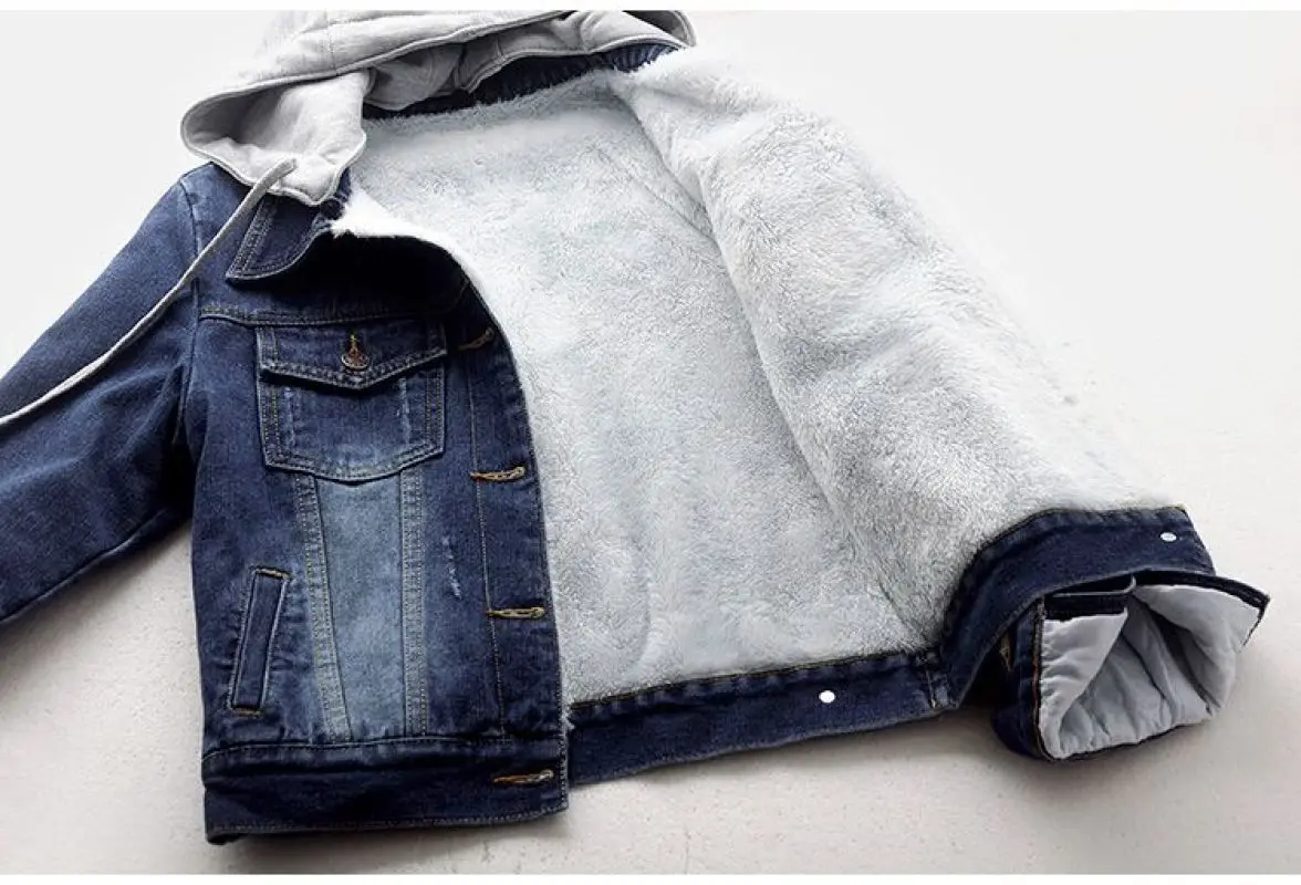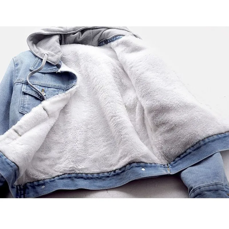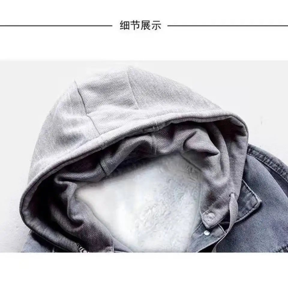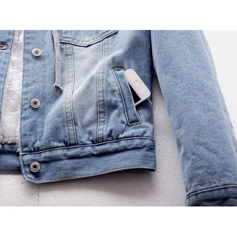 Женская джинсовая куртка с капюшоном, осенне-зимняя короткая винтажная куртка из флиса с длинным рукавом и плюшевой подкладкой