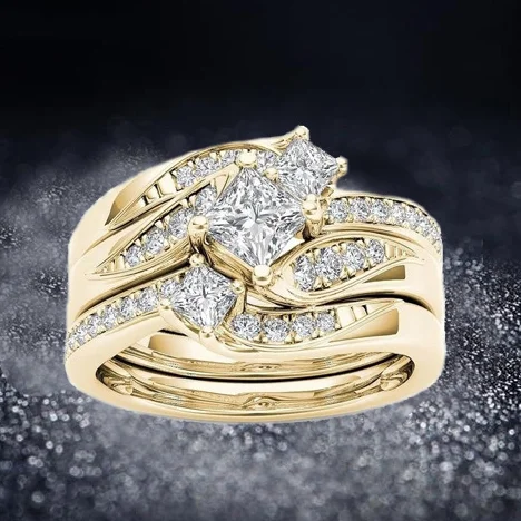 Изысканный женский набор свадебных колец, модные золотые обручальны...