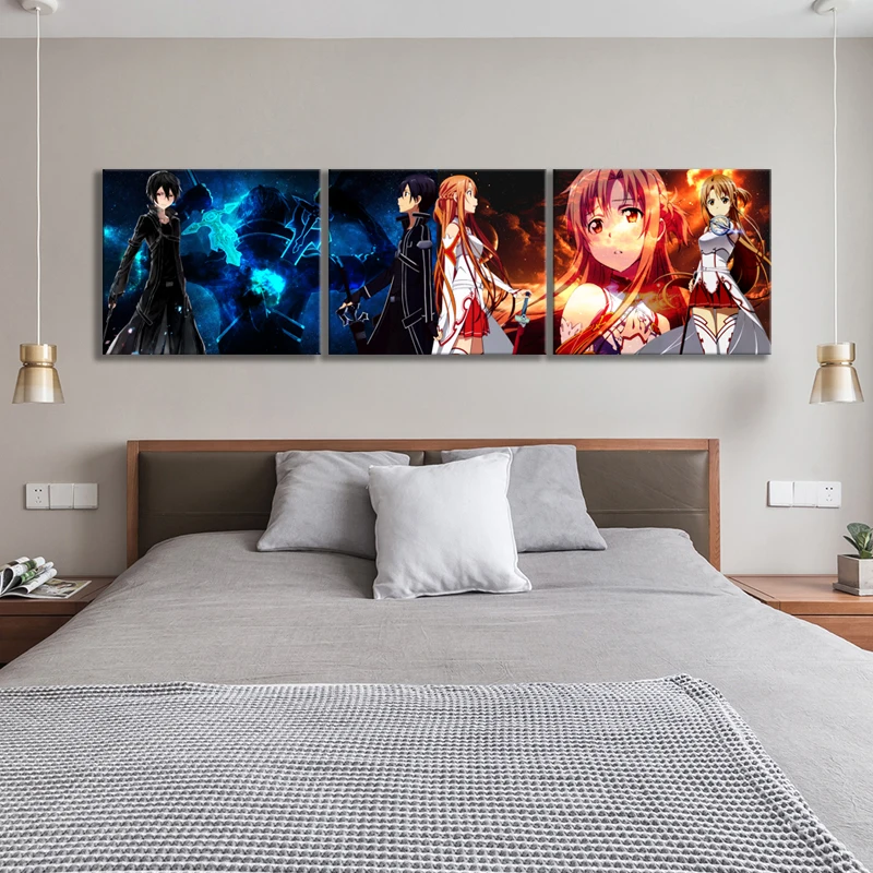 3 шт. меч искусство онлайн Кирито и Асуна аниме постер HD мультфильм Настенная картина холст картины для спальни настенный Декор без рамки