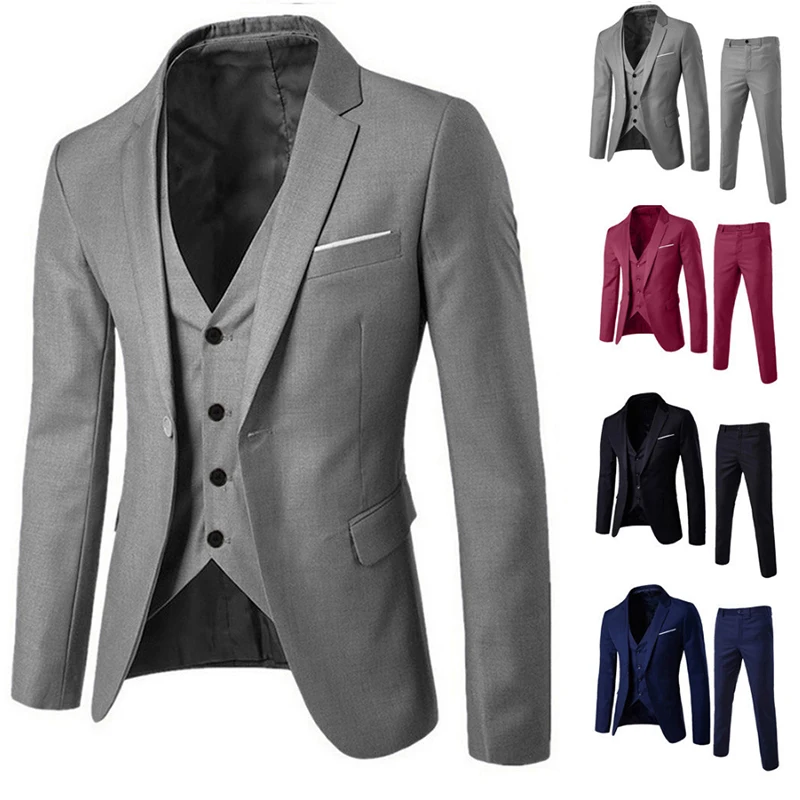 3 предмета мужской костюм с блейзером для свадьбы стройная фигура, деловая, для офиса, жених вечерние куртка костюмы мужской костюм с брюками жилет мужской костюм для выпускного вечера,