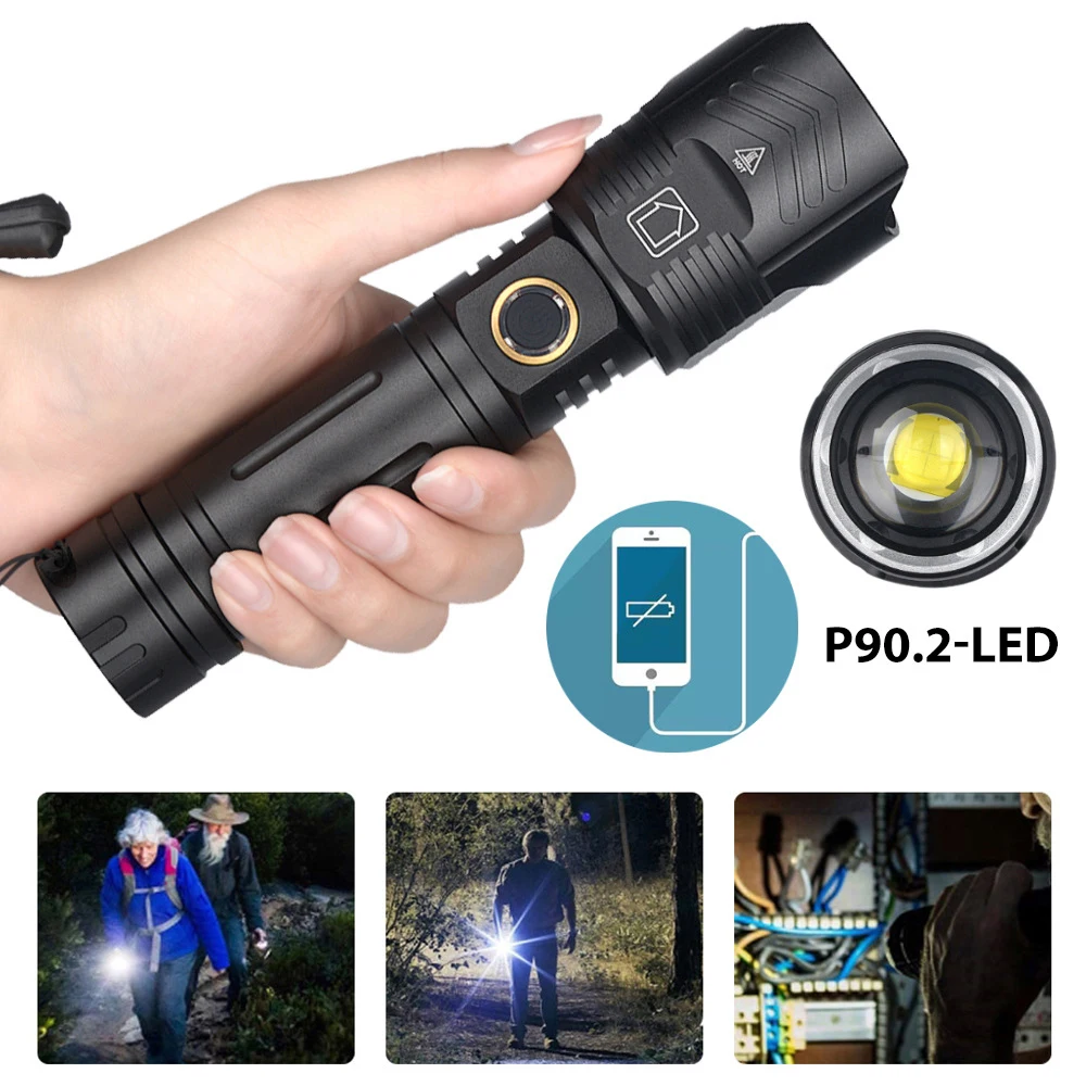 XHP90 супер яркий фонарик мощный фонарь USB Перезаряжаемые светодиодный ручной фонарь Фонари 2665018650 зум тактический фонарь