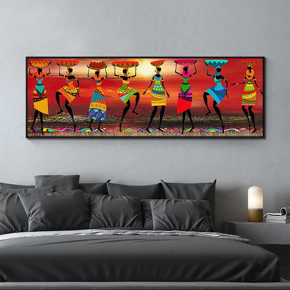 Художественные картины, танцующие африканские женщины, картина маслом для гостиной, холст, печать, домашний декор, без рамки