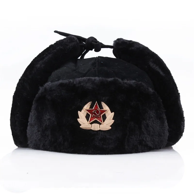 Зимняя ушанка-бомбер СССР, шапки, русская армия, советский значок, ...