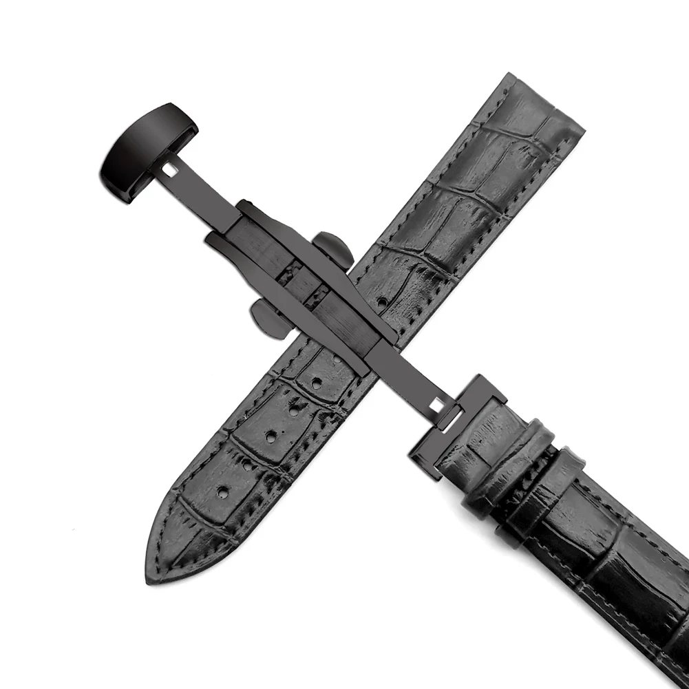 Высококачественный кожаный ремешок для часов диаметром 14-24 мм, ремешок с пряжкой-бабочкой, ремешок для наручных часов со стальной пряжкой, браслет