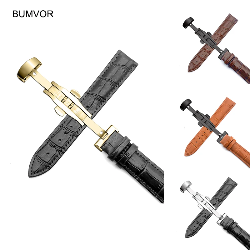 Высококачественные кожаные универсальные ремешки 14-24 мм ремешок для часов с бабочкой и пряжкой стальной ремешок с пряжкой браслет на запястье
