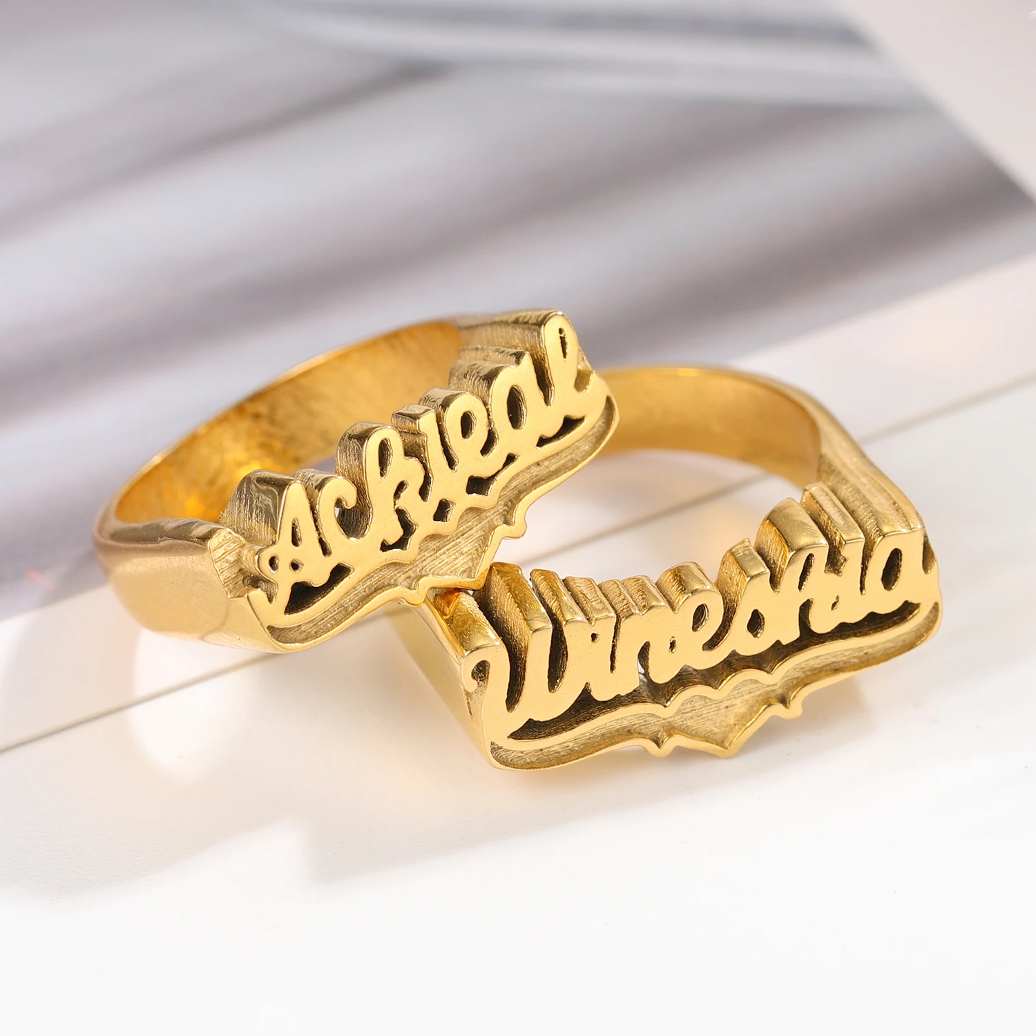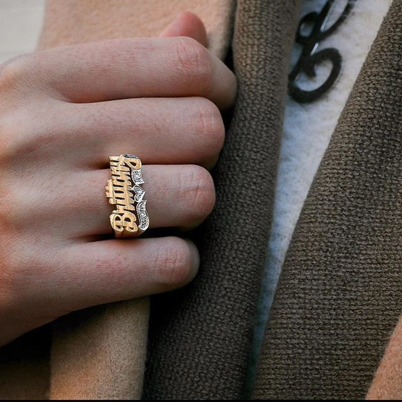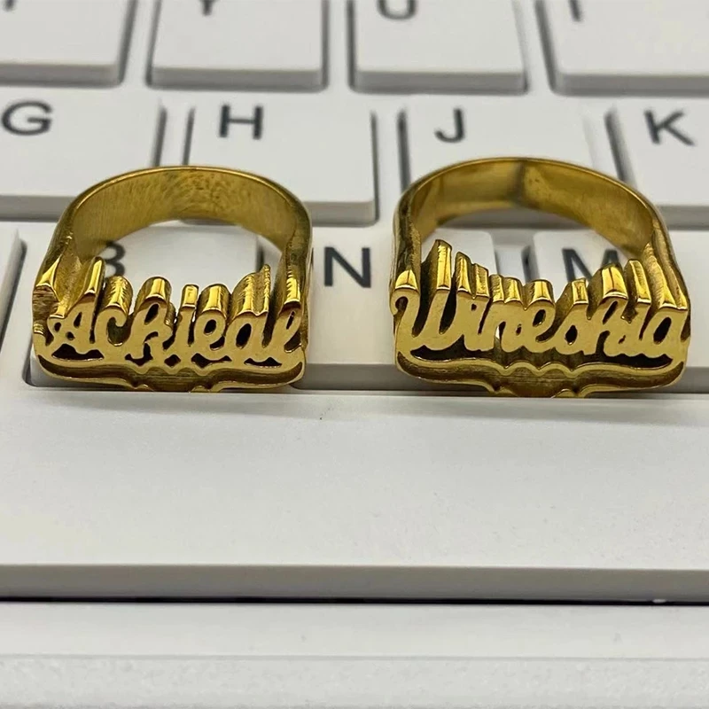 Женское кольцо под заказ, индивидуальное 3D кольцо, позолоченное ювелирное изделие 18 К, кольца с именем под заказ для мужчин, модный подарок в стиле хип-хоп