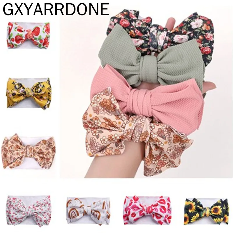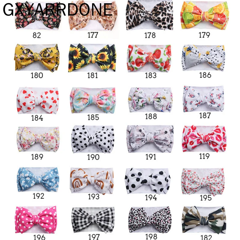 24 шт.лот для маленьких девочек повязка на голову с цветочным принтом; Эластичные носки для новорожденных повязка на голову для девочек платье с бантиками, чалма Детские аксессуары для волос
