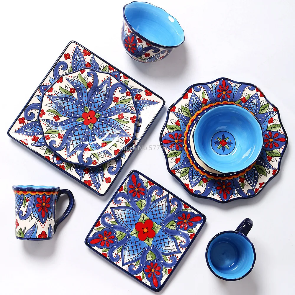 Европейский Креативный керамический набор посуды Ручная роспись большой западный стейк с боковой тарелкой и квадратной тарелкой столовых приборов