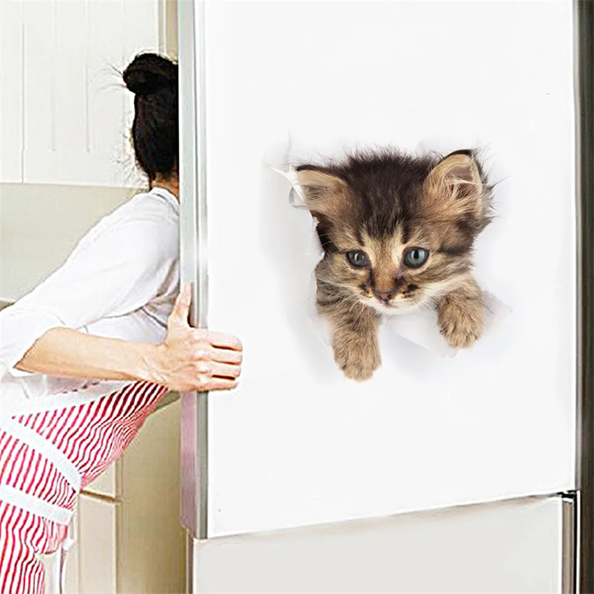 3D кошка, яркая Наклейка на стену, наклейки на унитаз 2022, модная ...