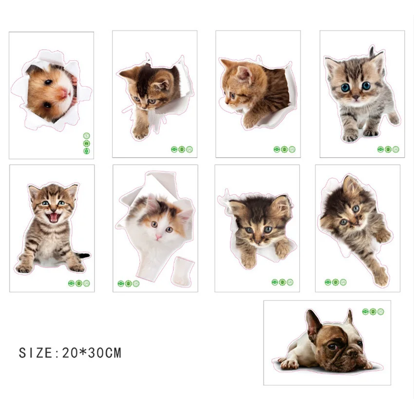 Мультяшные кошки, 3D наклейки на стену, наклейки на унитаз, вид на отверстие, яркие собаки, украшение для ванной, дома, стены с животными, наклейки, художественный постер