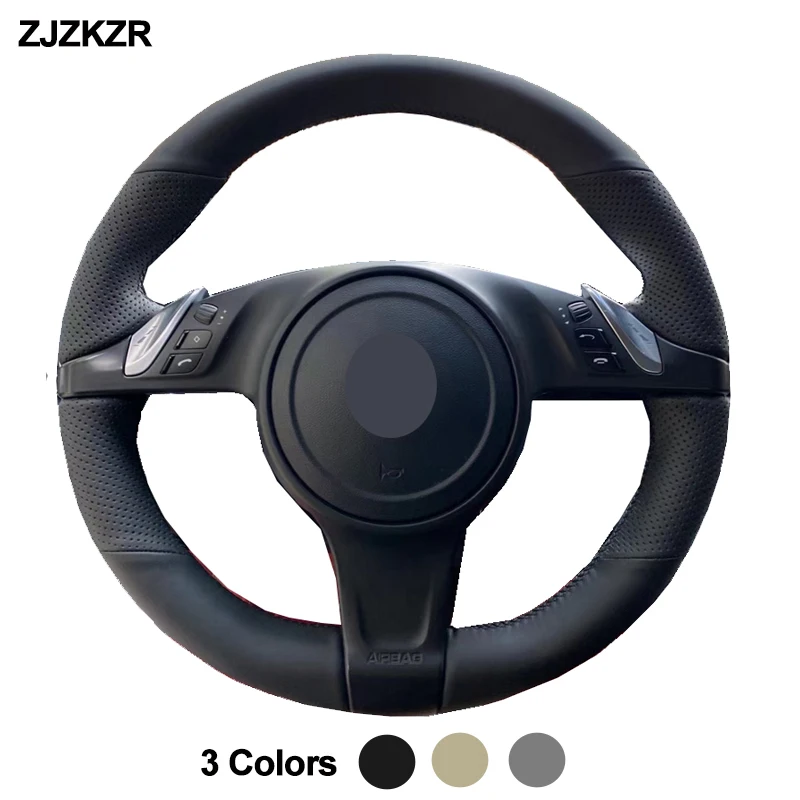Чехол для руля автомобиля, из искусственной кожи, бежевый, черный, серый, для Porsche Cayenne 2011, 2012, 2013, 2014