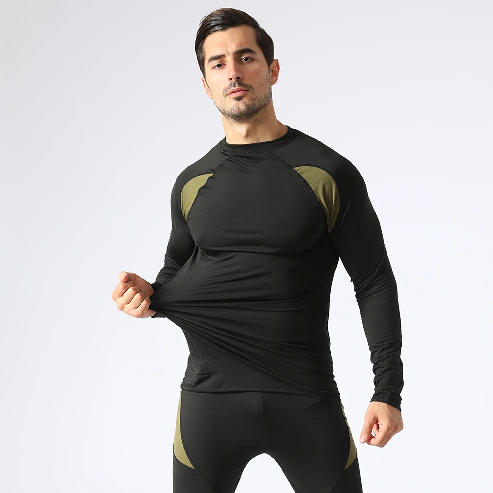 Мужской зимний флисовый спортивный костюм, спортивная одежда, спортивный комплект для тренировок в тренажерном зале, компрессионная рубашка для фитнеса, тренировочное плотное термобелье для бега