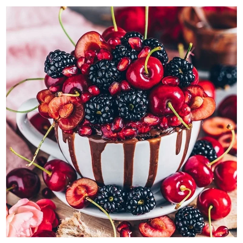 5D алмазная живопись, красная малина, вышивка, круг, устройство, мозаика, картина стразы, натюрморт, жизнь, украшение для дома, подарок