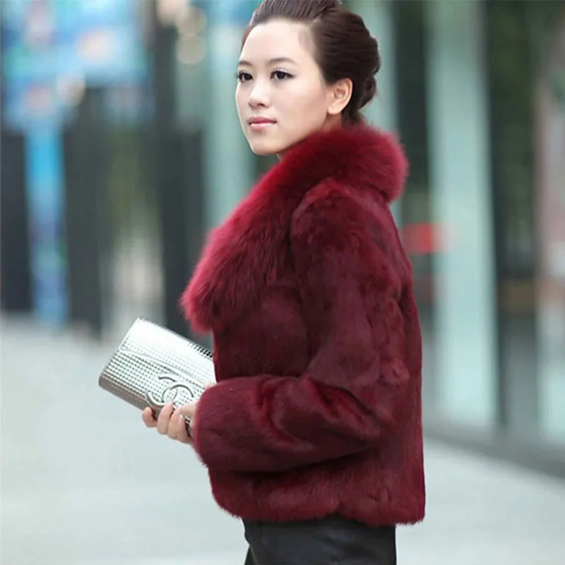 Шуба из искусственного кроличьего меха, женская теплая верхняя одеж...