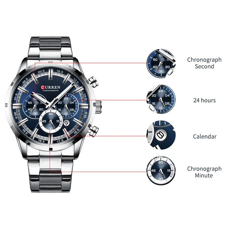 Часы Мужские CURREN, спортивные, водонепроницаемые, из нержавеющей ...