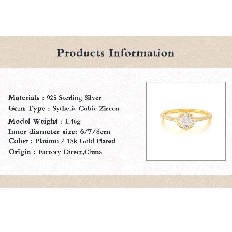 Женское кольцо с овальным цирконием Romad, кольцо из стерлингового серебра 925 пробы с геометрическим бриллиантом кольцо для помолвки перстень пробы, свадебные украшения W4
