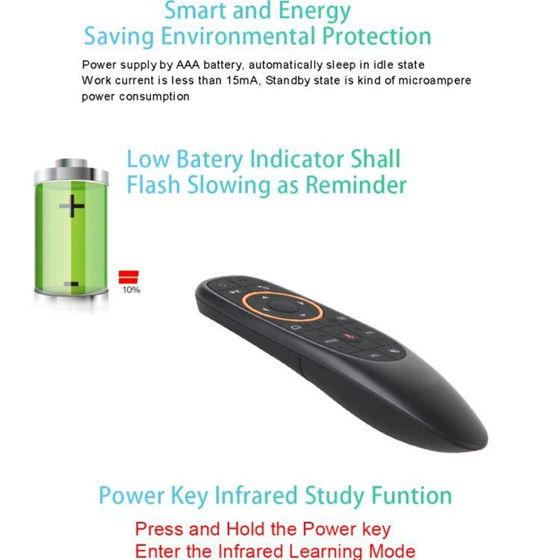 Пульт дистанционного управления G10, воздушная мышь с голосовым управлением, 2,4 ГГц, голосовой поисковый помощник Google, ИК обучаемый пульт без гироскопа для ТВ-приставки на Android, черный