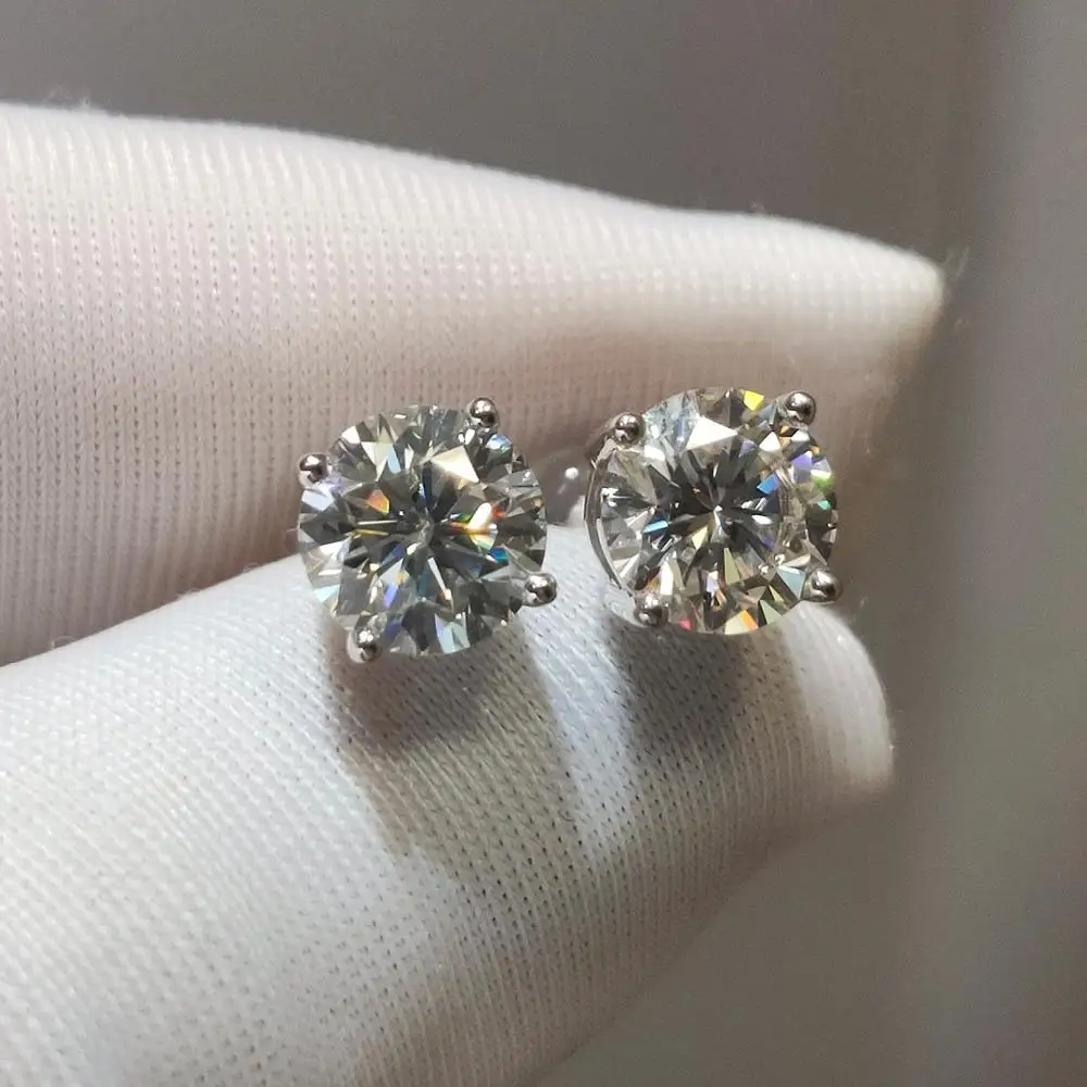 Серьги-гвоздики с бриллиантами 18 К, белое золото с бриллиантами круглой огранки, всего 1 карат, 2 карата, D цвет, Муассанит, 4 зубца, ювелирные изделия с настоящим драгоценным камнем