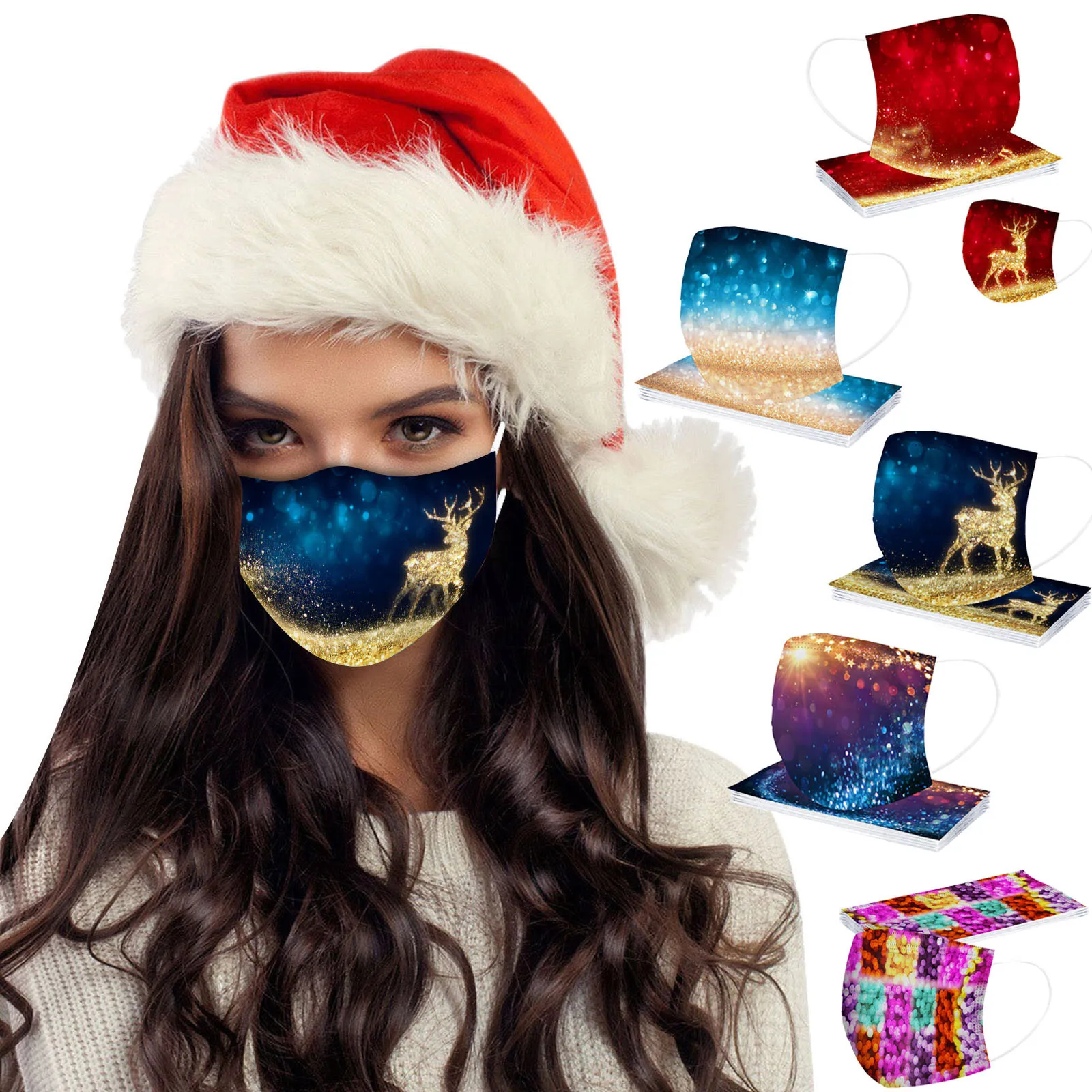Быстрая доставка, 1020 шт., маска для лица для взрослых Mascarilla 2021, Рождественская одноразовая маска для лица с принтом, промышленная 3-слойная повязка на уши