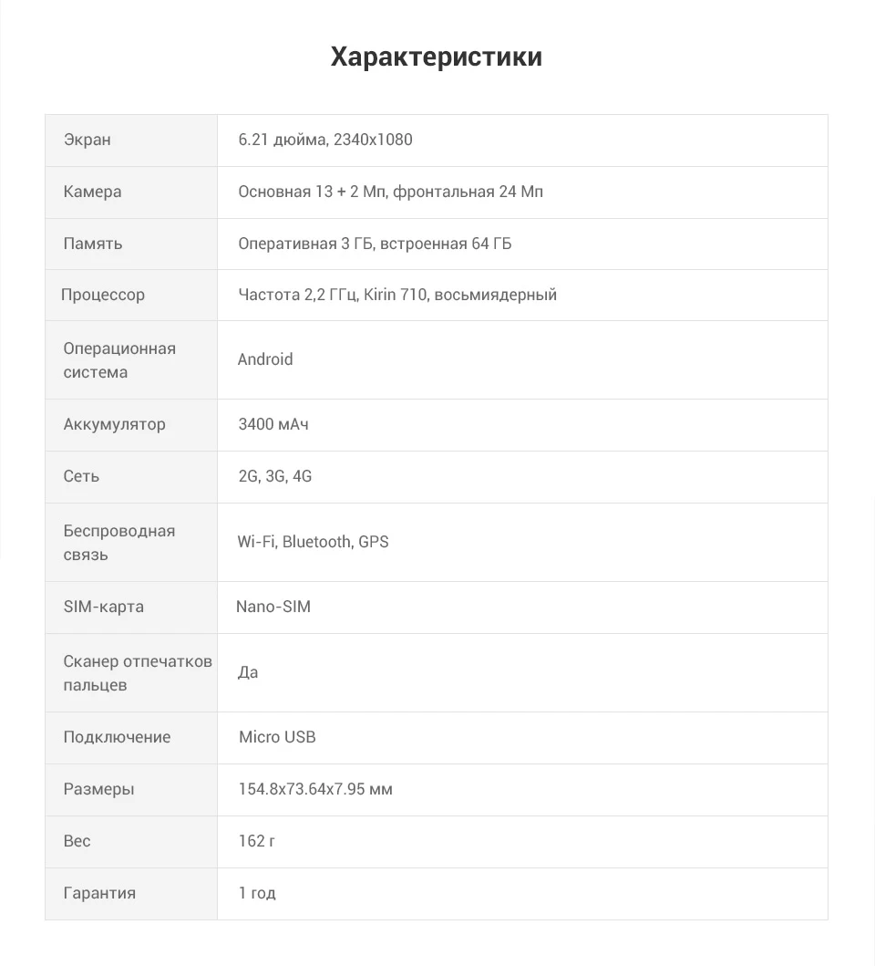 Батарея3400 мА*ч, несъёмная