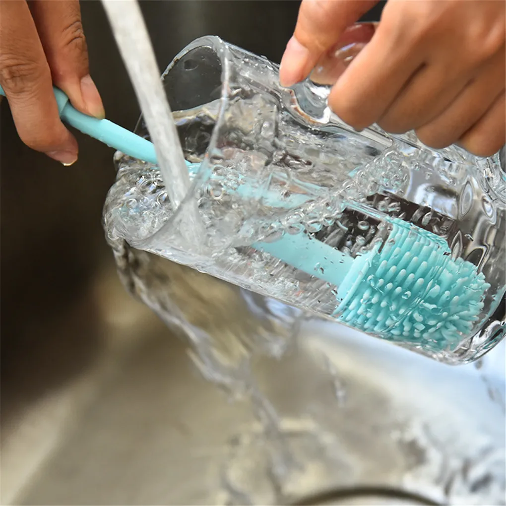 Силиконовая щетка с длинной ручкой, инструмент для мытья детской бутылочки с молоком, стеклянная чашка, глубокий узкий рот, контейнер, щетка для чистки