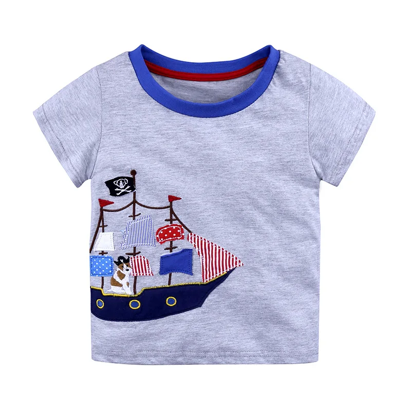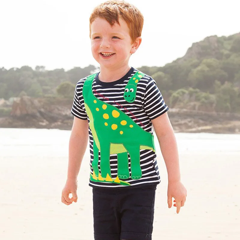 Футболка с рисунками зверей из мультфильмов, спортивный костюм для маленьких детей, для мальчиков и девочек, детская хлопковая футболка с Короткими Рукавами Летняя одежда с принтом "динозавр"; Футболка летательный аппарат для детей ясельного возраста