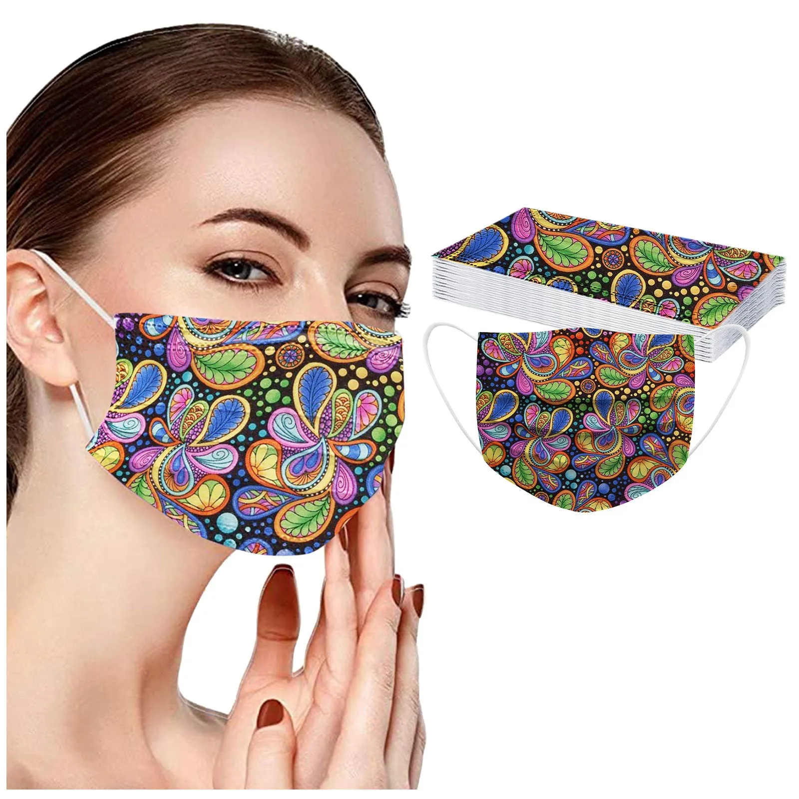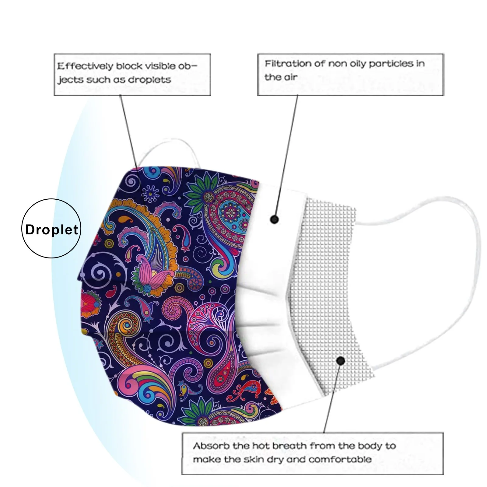 2050 шт Винтаж печать маски одноразовые дыхательные аппараты для взрослых; Дышащая 3 Слои Ply Non ткали маска рот с цветочным узором на талии маска для лица mascarilas