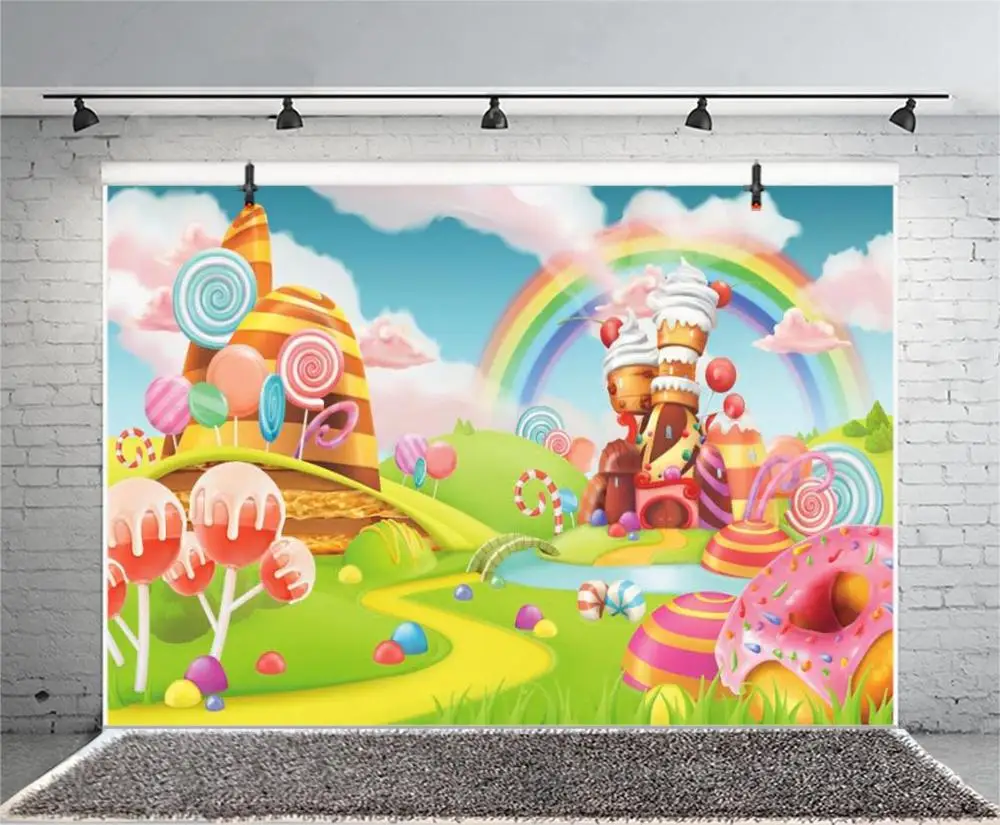 Фон для фотографий леденец пончики мороженое конфеты Радуга детский душ день рождения для девочек баннер реквизит