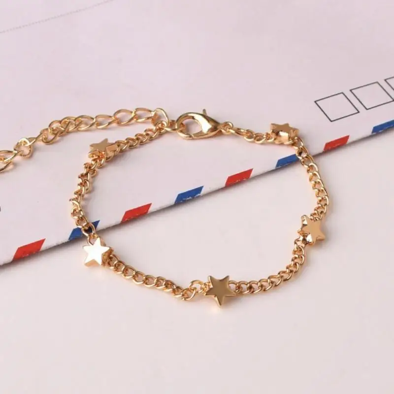 1 шт., простой изящный браслет-цепочка со звездами для женщин и девушек, модный квадратный браслет с пятиконечной звездой, женские амулетные браслеты, ювелирные изделия, подарок Вечерние
