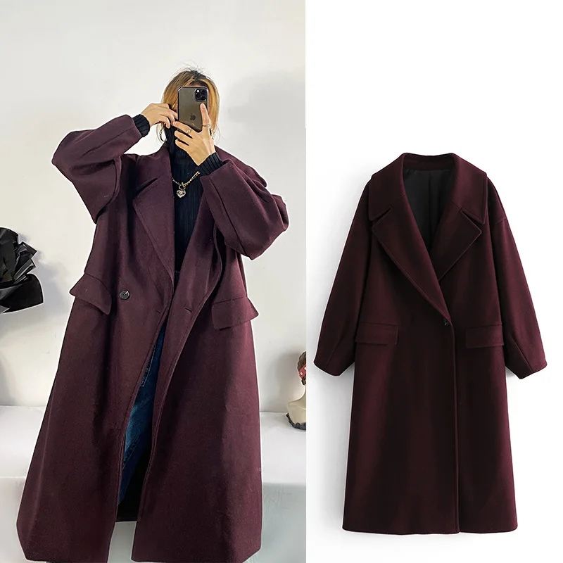 Женское шерстяное пальто в стиле оверсайз на одной пуговице, винтажное пальто с рукавами-фонариками и карманами, верхняя одежда Za, шикарное пальто, 2020