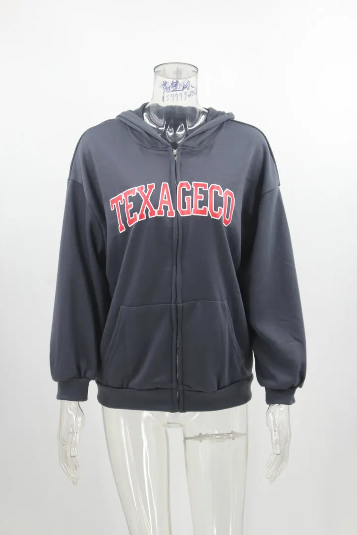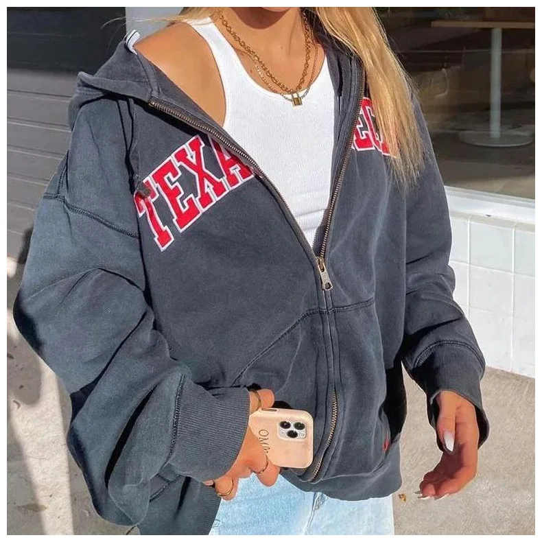 Женская винтажная толстовка, серо-Синяя толстовка на молнии с красными буквами, с длинным рукавом, свободного покроя, для осени, 2020
