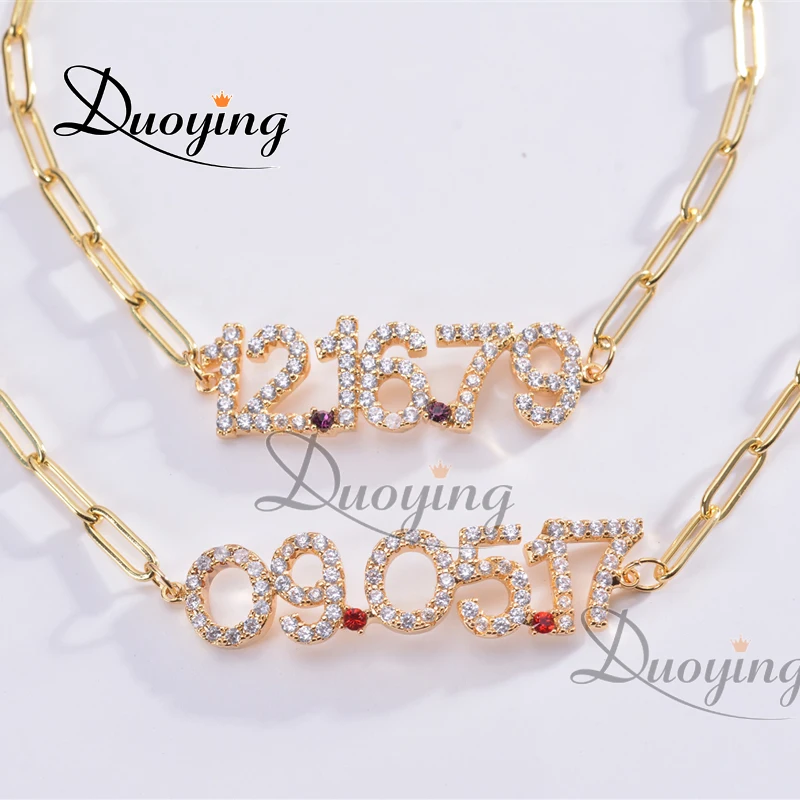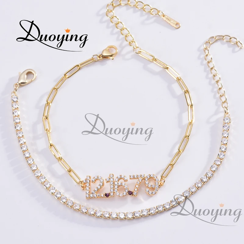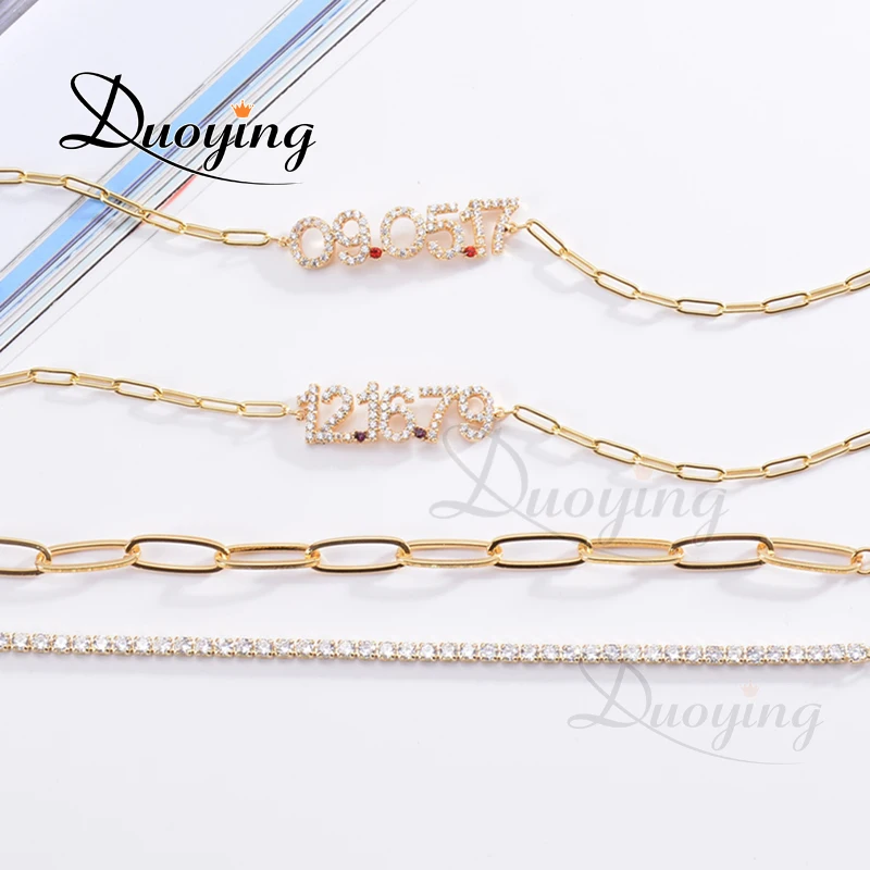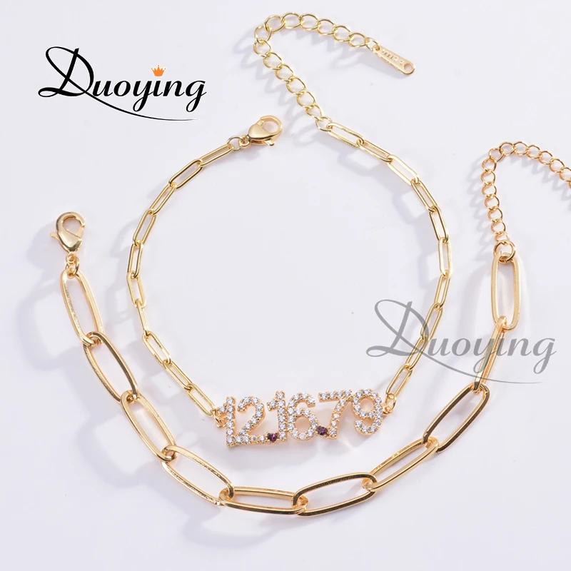 Браслет Duoying женский с цифрами, с цирконом, многослойная цепочка Цирконий, браслеты с буквами