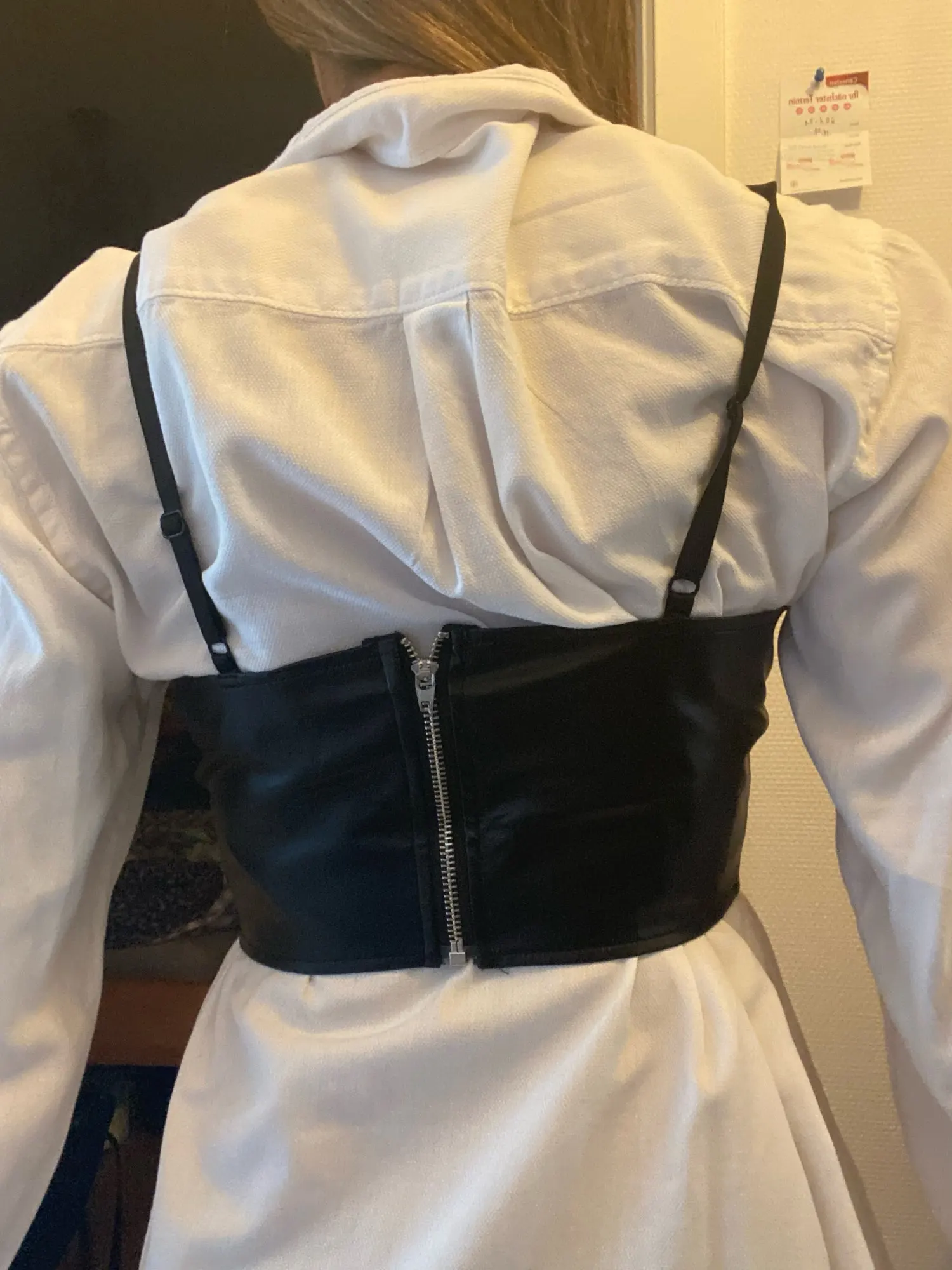Жилет женский из искусственной кожи, на бретелях, с открытой спиной